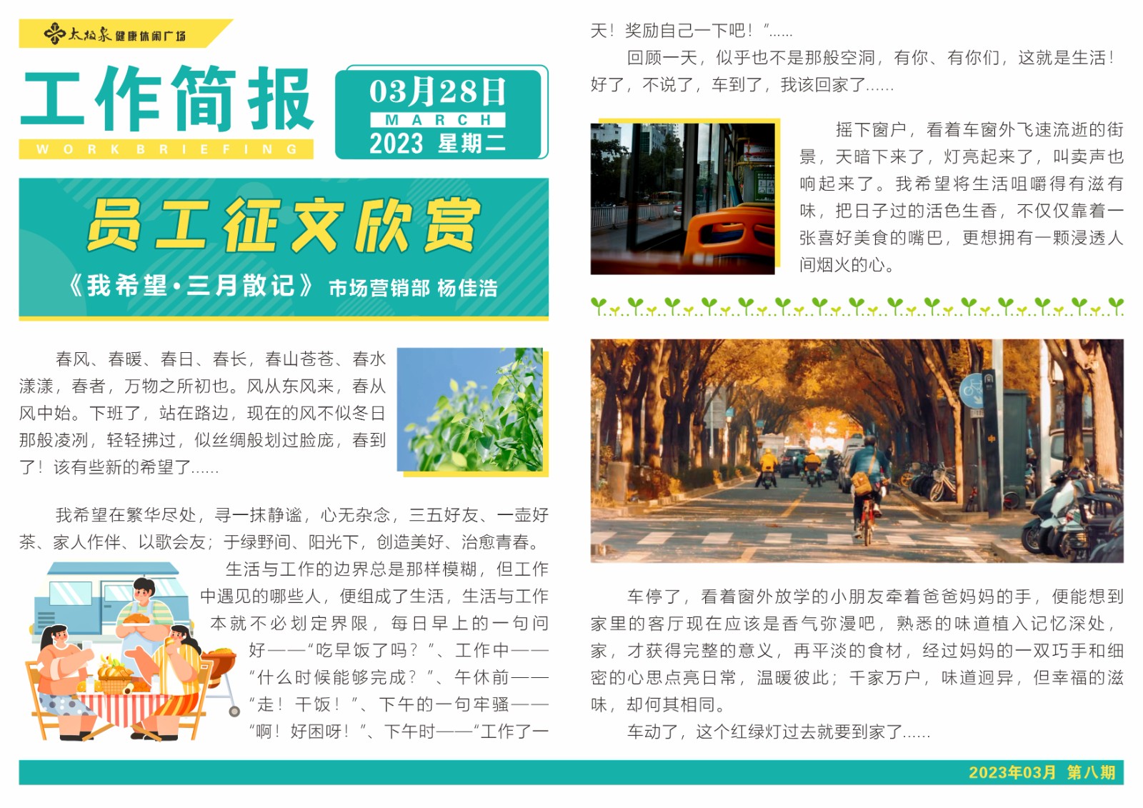 员工征文欣赏《我希望·三月散记》市场营销部 杨佳浩