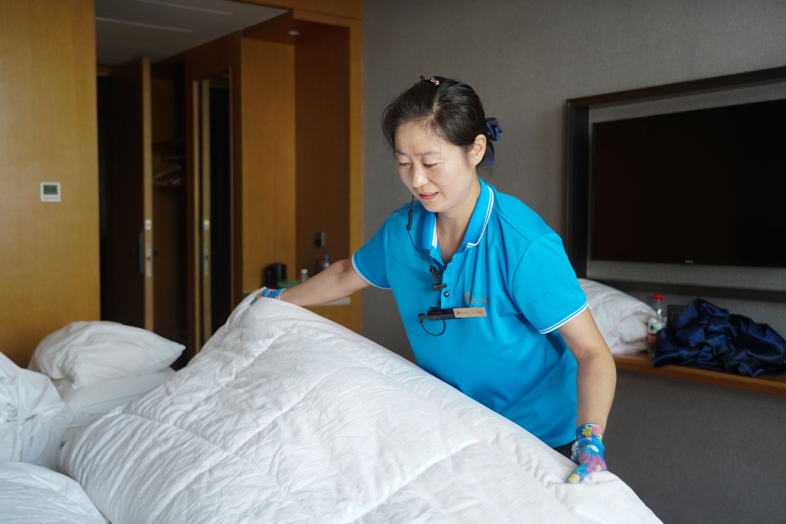 然后就是客房工作最重要的清洁标准。我始终坚持一个标准:打扫后的房间,必须达到我自己愿意入住的程度。比如,每条毛巾的洁净度,我自己要觉得我自己也能放心使用才行。若连自己都无法接受,又怎能提供给客人呢?这就是我的全部建议。