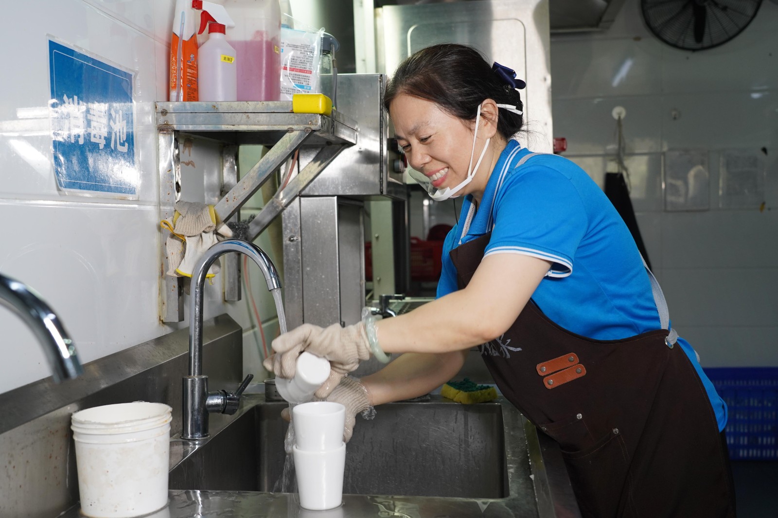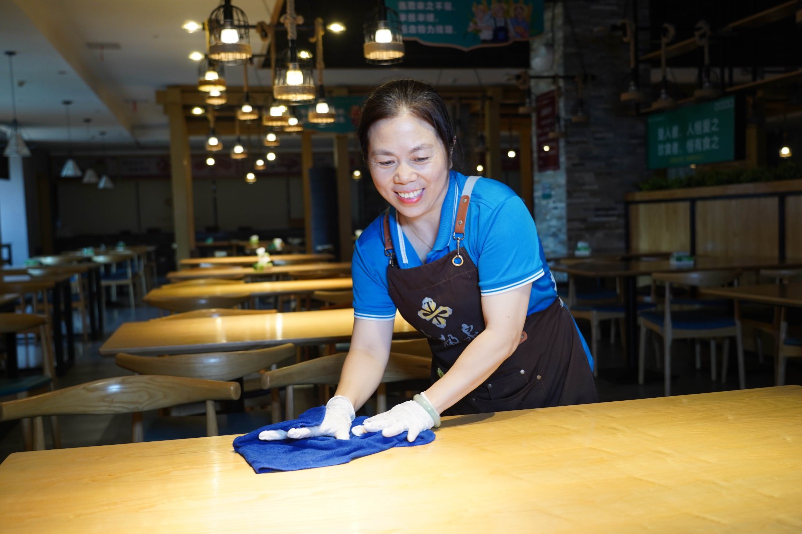 “标准得刻在心里,更要实实在在地落在手上。”王女士认为清洁是一份沉甸甸的责任、一份源自细节的骄傲。每一张擦拭光亮的桌面,每一寸不留余地的卫生死角,都在她日复一日的坚持中熠熠生辉。