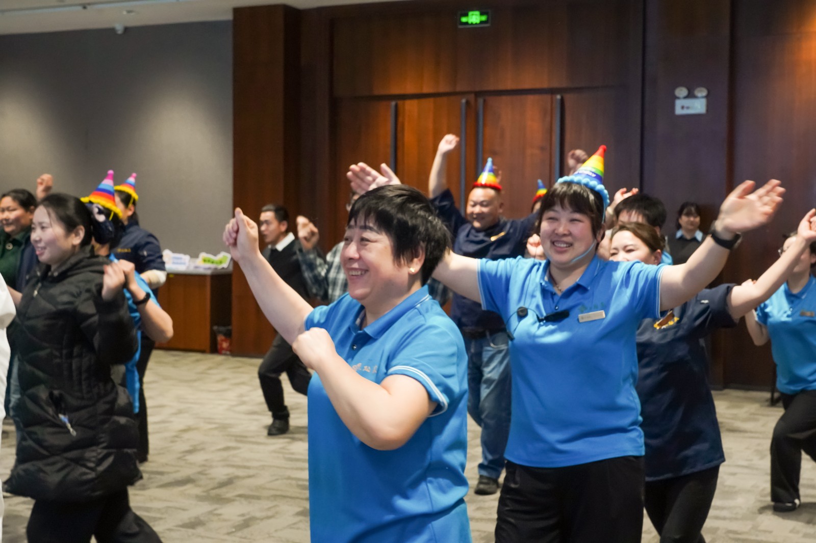 活动伊始,主持人以热情洋溢的开场向全体寿星致以生日祝福。随后,在主持人的带领下,大家一起跳起古法健身操。一招一式间,大家卸下了工作的疲惫,身体被唤醒,笑容也渐渐舒展。简单的热身之后,现场气氛迅速升温。