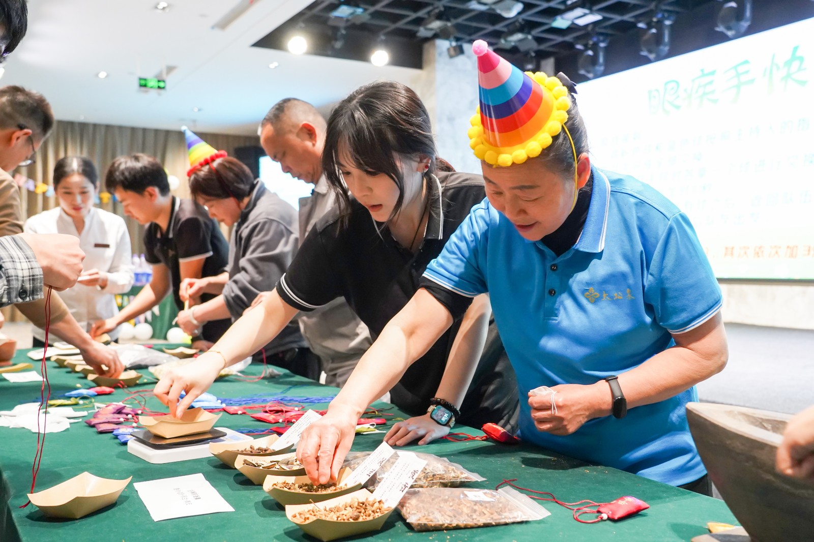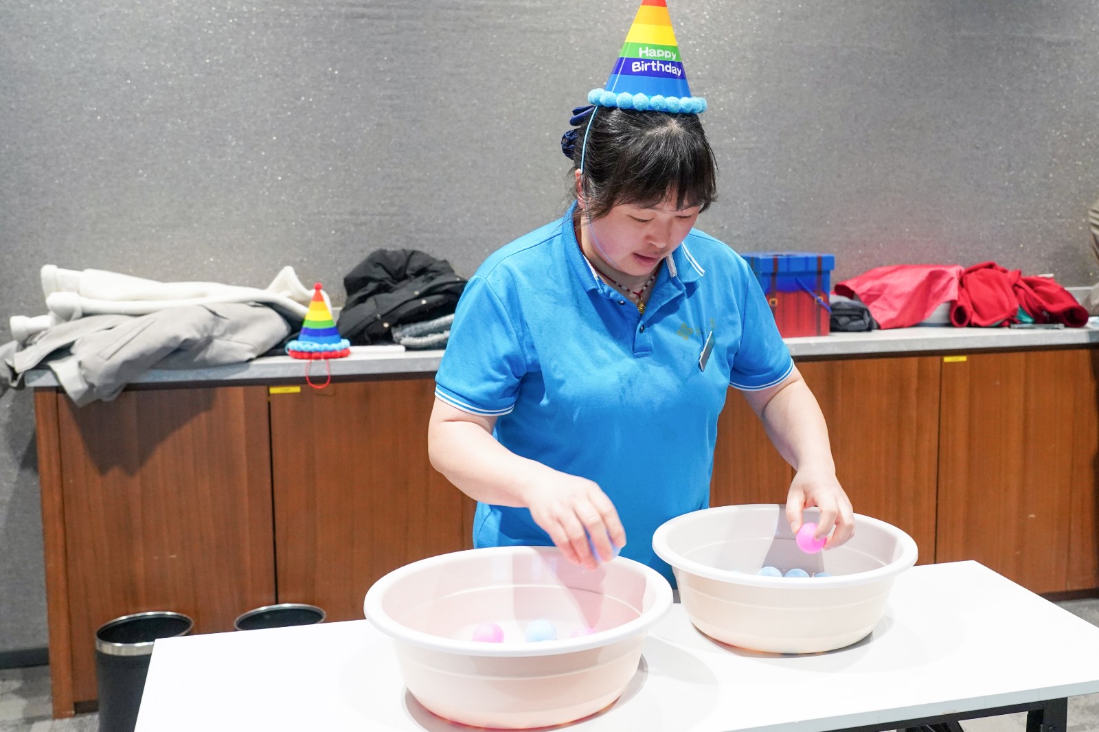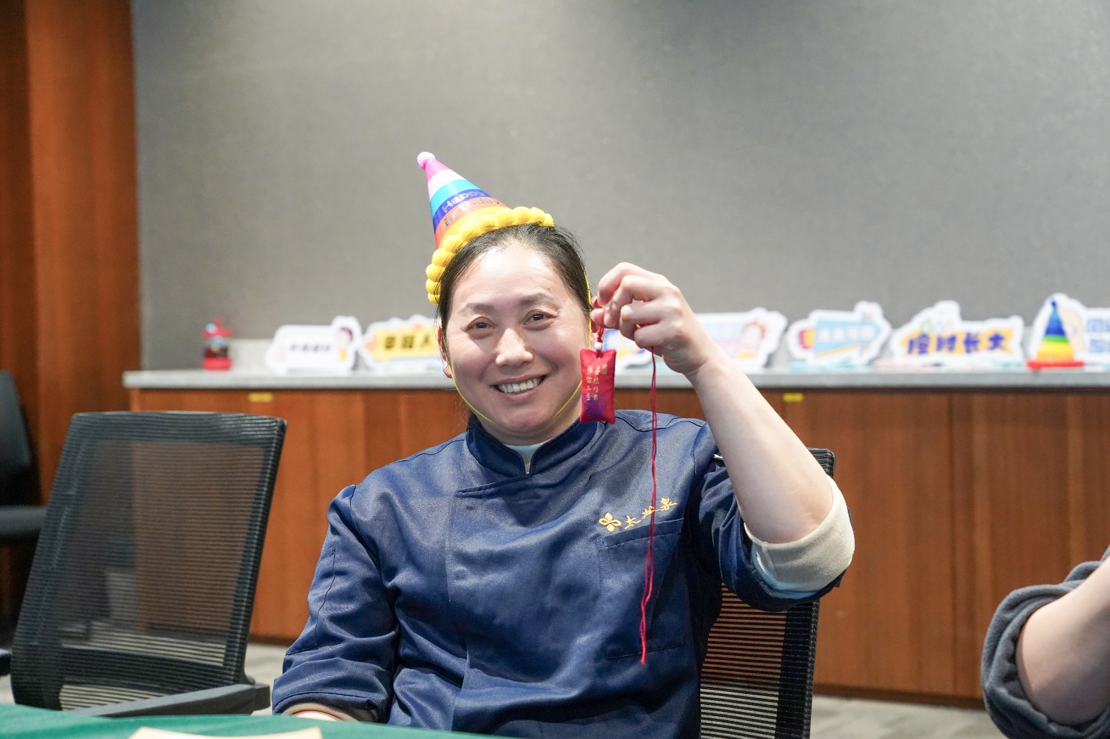 三轮趣味游戏大家默契配合、全力以赴;在手工区大家也细致的挑选香囊、填充香料,淡淡草药香弥漫在空气中,大家完成了一件件精致作品。游戏区欢呼声此起彼伏,手工区则是一片专注与静谧,两种截然不同的氛围在同一场活动中交织出别样的精彩。在游戏环节结束后,迎来了温馨的生日礼物颁发环节。各部门寿星依次上台,领取公司精心准备的生日礼物——带有生肖和生日日期图案的生日圆盘,希望大家在新的一岁中圆圆满满、平安快乐。