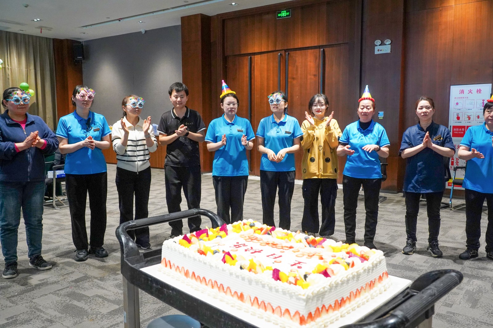 活动的尾声,全体寿星戴上生日帽,围成温暖的圆圈。在欢乐的音乐中,大家闭上双眼、双手合十,默默许下新一岁的心愿。烛光摇曳,映照着每一张洋溢着幸福的笑脸。一声声“生日快乐”、一张张合影,定格了属于这个春天的温暖瞬间。