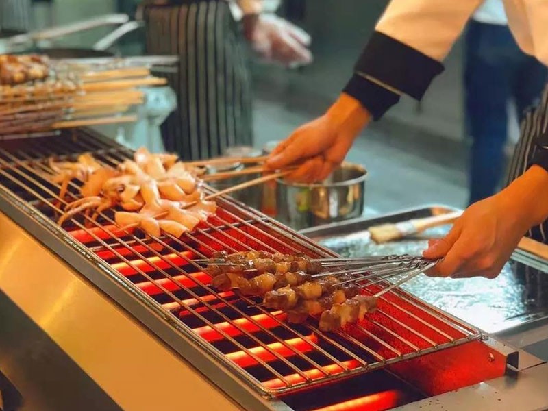 现在我们所处的位置是太极泉健康休闲广场的大型自助餐饮厅,提供早中晚夜宵四餐精美自助,其中晚餐为太极泉高品质自助晚宴。餐厅餐位有400余个,可容纳三百人同时就餐,配备宴会包厢、VIP专区,功能齐全,环境优雅。 自助餐的菜品丰盛达上百种,包含冷饼热炒...