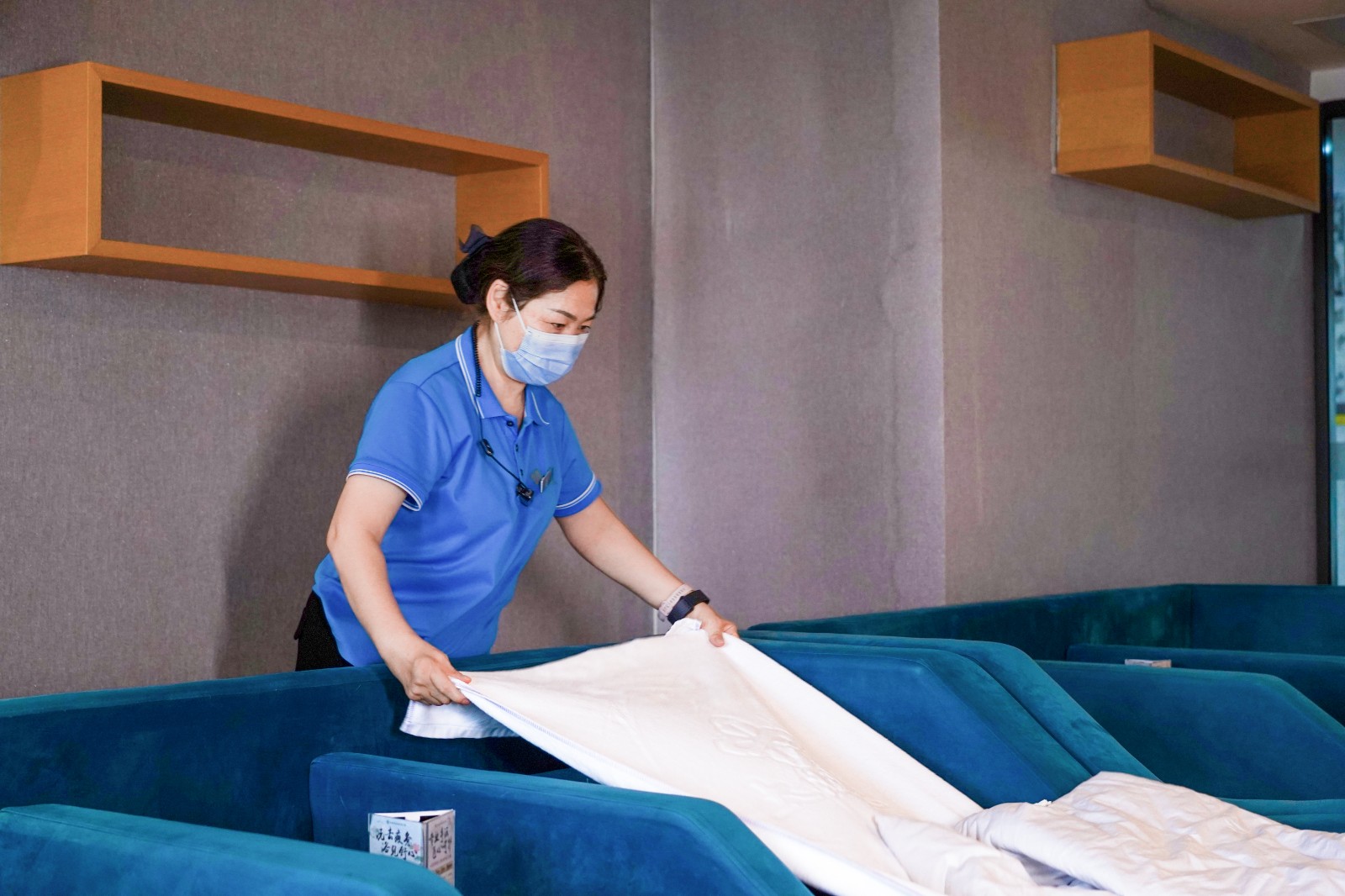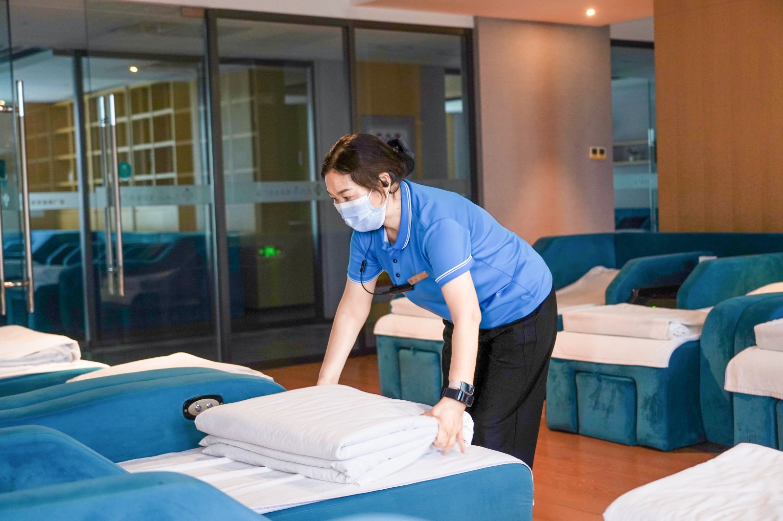 而且,真的会有客人记得我。有一对夫妇,他们总爱挑淡季来,说高峰期人太多。来的次数多了,我觉得面熟,每次见到都会主动微笑问好。他们说就喜欢淡季来,人少清静,洗个澡、睡一会儿,特别舒服。因为见过几次,我每次都会跟他们打招呼,偶尔也会聊几句。其实人与人之间的了解,不就在于多沟通吗?他们愿意聊,我就陪着说说话。有一次我注意到有位先生头发几乎没白,看起来顶多六十出头,结果他说:“我都六十九啦!” 我特别惊讶:“不可能吧?您一点白发都没有,看着真年轻!”所以,我觉得和不同的客人沟通也是很有意思的。
